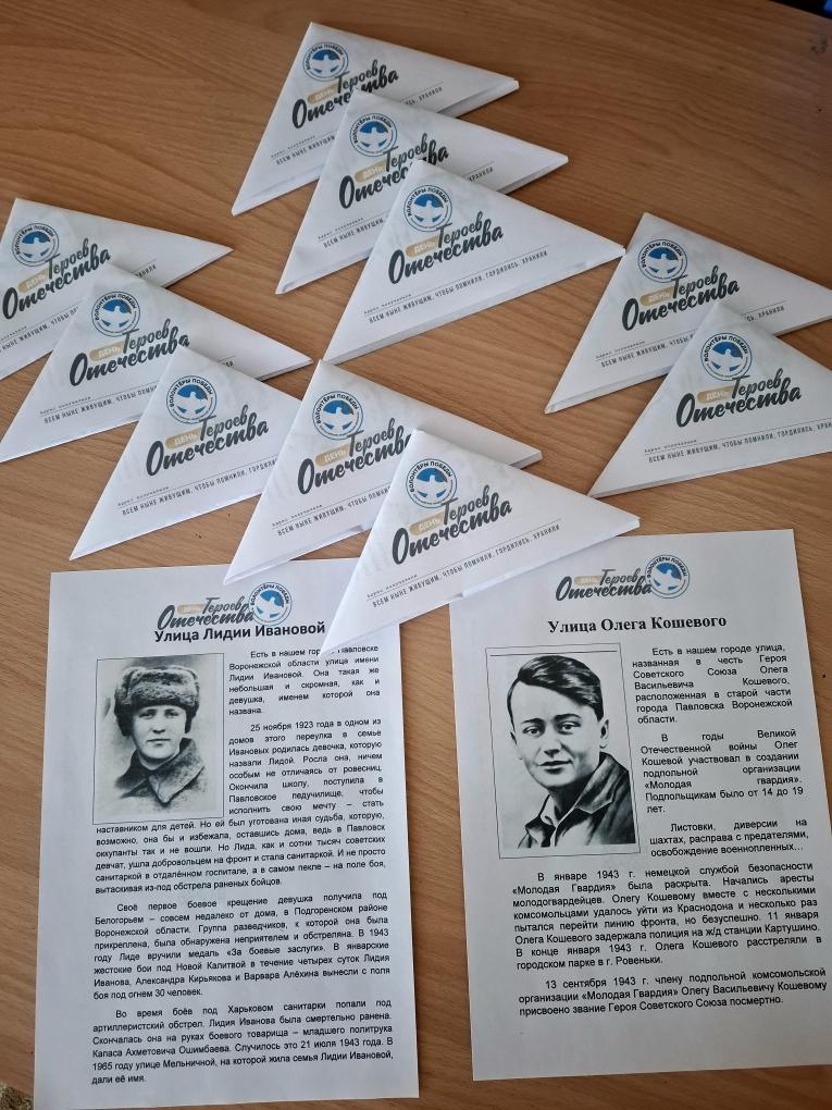 Сегодня 09.12.2024 года, находясь в указанных локация, наши воспитанники раздали жителям нашего города листовки в виде писем-треугольников с информацией о Герое, в честь которого названа улица, рассказывая о их подвигах.