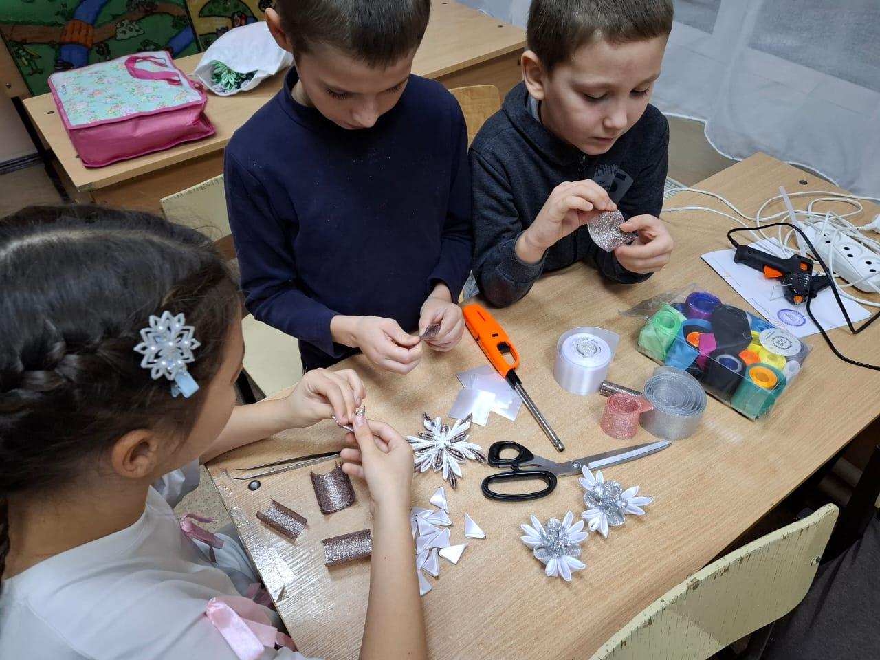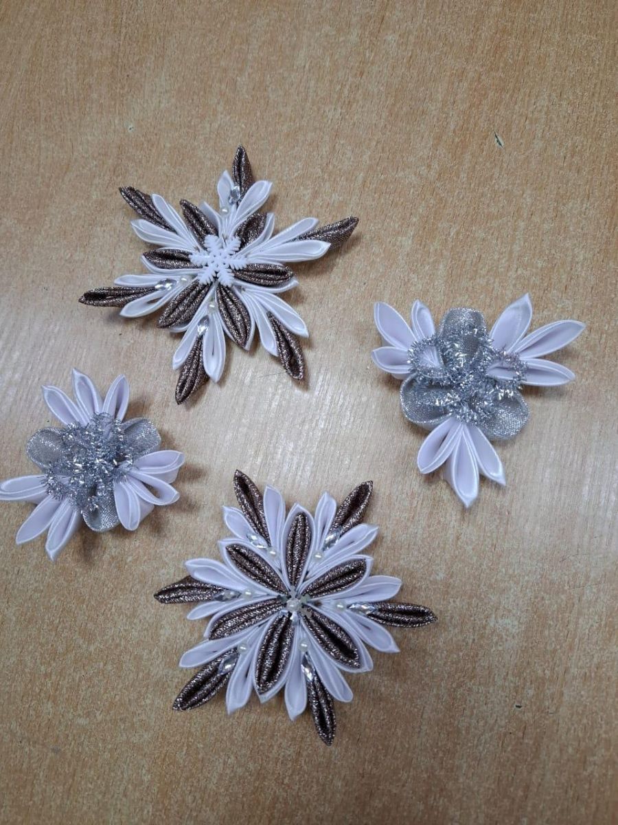 В ожидании новогодней суеты воспитанники центра начали изготовление снежинок в технике канзаши.